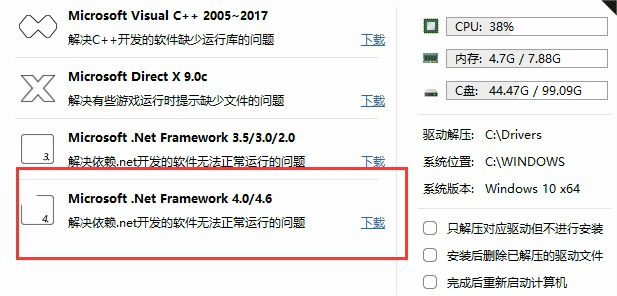 万能驱动助理如何下载Microsoft.Net Framework 4.0?